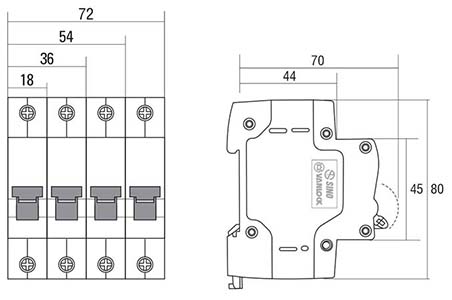 • Đặc tính ngắt: loại C (Bảo vệ ngắn mạch theo nguyên tắc từ với dòng điện từ 5 đến 10In)
