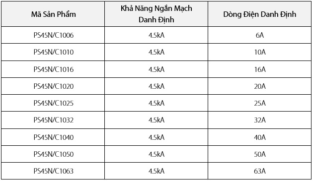 • Khả năng chịu dòng cắt: 4.5kA