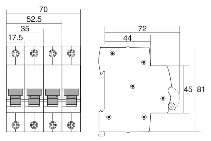 • Số cực: 3 cực • Dòng định mức: 6-63A • Khả năng chịu dòng cắt: 6.0kA • Điện áp định mức: 415V AC • Tiêu chuẩn: Sản xuất theo tiêu chuẩn IEC 60898